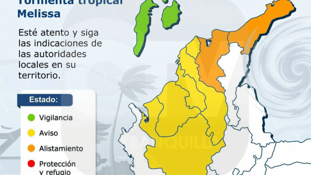 La tormenta tropical Melissa continúa desplazándose por el mar Caribe, según informó la Mesa Técnica de Alertas de Ciclones Tropicales (MTACT). Las autoridades mantienen el estado de Alistamiento 🟠 en los departamentos de La Guajira, Magdalena y en los Cayos del norte del Archipiélago de San Andrés, Providencia y Santa Catalina. Por su parte, San […]