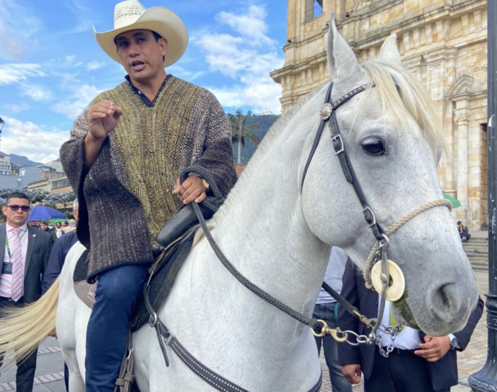 «Nos dieron la oportunidad, Roy Barreras dijo que podíamos traer las mascotas. Demotramos que somos una cultura y un territorio diferente»: El senador Alirio Barrera entró al Congreso de la República con su caballo ‘pasaporte’ siguiendo política ‘pet-friendly’.