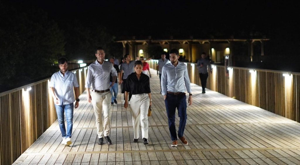 El alcalde Jaime Pumarejo realizó una inspección a la prueba piloto de iluminación que se adelanta en el Ecoparque como parte de las experiencias que se proyectan a futuro en la ciénaga.