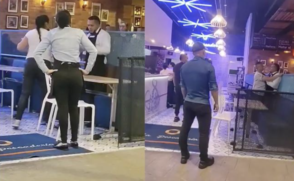El hecho que se presentó el pasado jueves 31 de marzo y que además fue registrado mediante un video, se puede apreciar cómo un mesero del restaurante está discutiendo, al parecer, porque la administradora no le habría pagado las propinas que le correspondían.