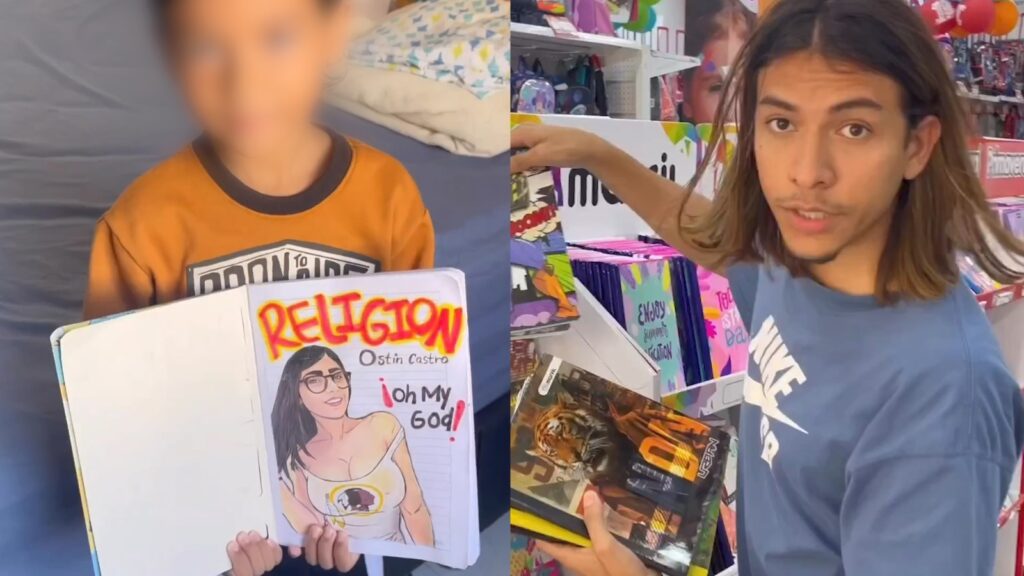 El influenciador dibujó la famosa actriz de contenido sexual ‘Mia Khalifa’, el dibujo de la mujer estaba acompañado de la frase ‘Oh my God’, en español significa ‘Oh Dios Mio’, esta frase es característica de la actriz en medio de sus encuentros sexuales con sus parejas.